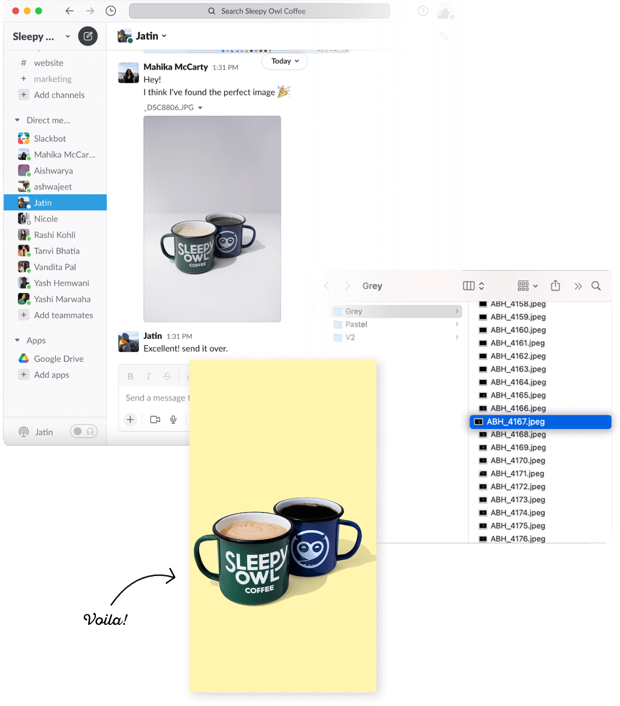 Once the shoot is done, the photographer and graphic designer huddle around a screen, parsing through hundreds of pictures and selecting the best options.