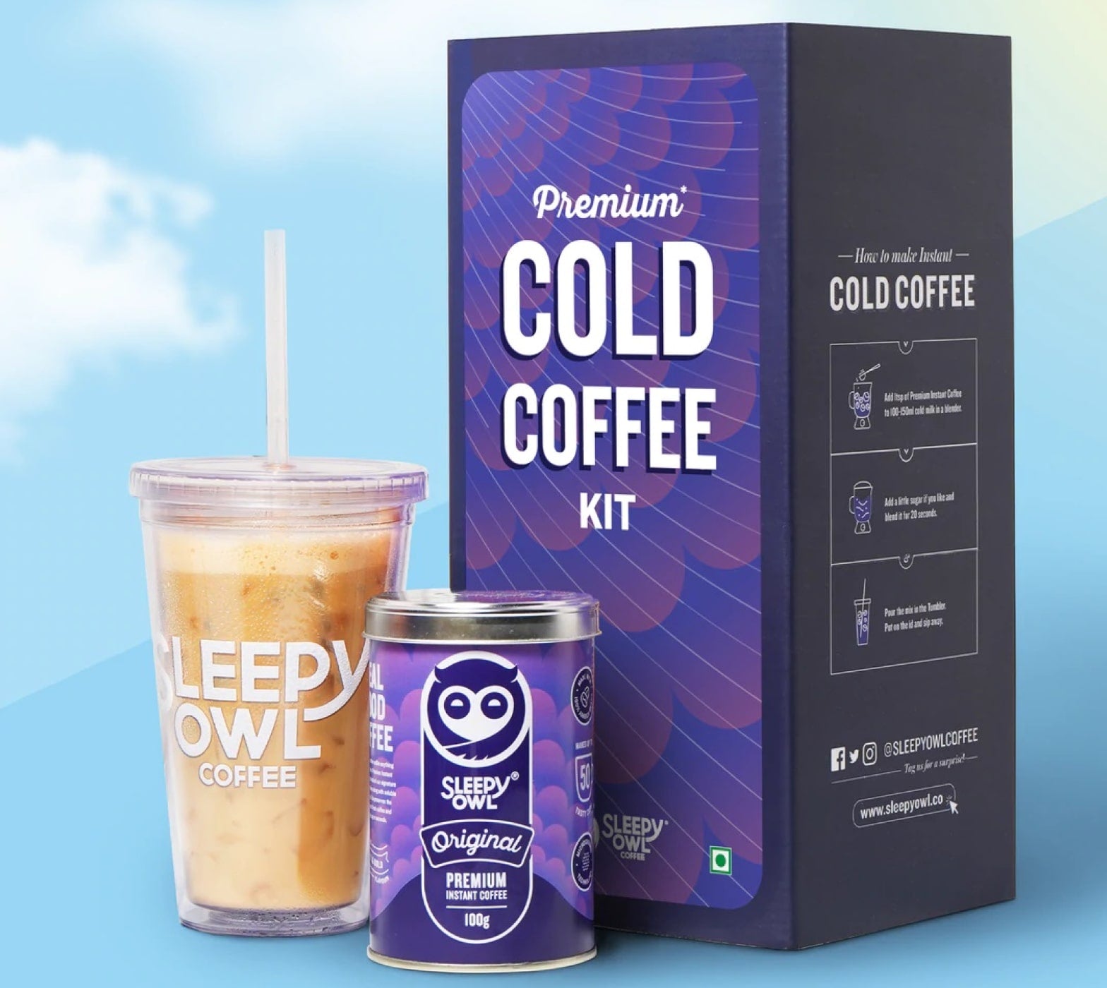 If you love your coffee cold and refreshing then our Cold Coffee Kits will be perfect for your on-the-go needs. This coffee travel kit has one flavour of our Premium Instant Coffee along with our super chic Tumbler. The Tumbler is designed with a tight screw on lid and secure straw that prevents any spillage of the coffee. It also has a double walled body which keeps your coffee cold for a long time and prevents condensation on the outside. It’s made especially for cold coffee drinks and is perfect to carry around. It’s made with BPA-free polymer which is completely safe and has a capacity of 475 ml. It’s iced coffee kit goals!