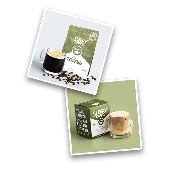 We at Sleepy Owl love an authentic cup of Kaafi but without the hassle. Hence we formulated the right grind and roast, and the perfect blend of coffee and chicory in our famous Brew Bags so that our consumers could achieve the perfect concentrate within 5-7 minutes without using extra brewing equipment.