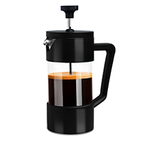 Crafted with borosilicate glass, stainless steel and food-safe plastics, our French Press has a minimal yet elegant design which looks great on a kitchen counter. The two-layered filter helps brew two clear cups in five minutes without any remains of coffee grounds. The carefully shaped and grated spout gives the perfect pour without spillage.