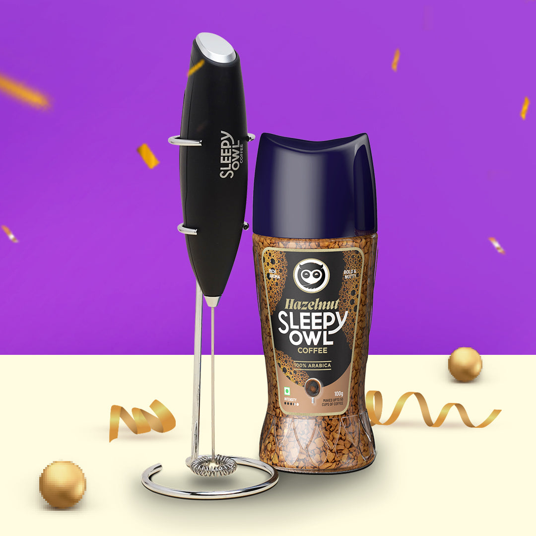 Delicious coffee, ready in seconds. Shop the ultimate combo of our powerful Frother and Hazelnut Instant Coffee. With a coffee that's 100% Arabica with zero preservatives and a chic Frother that froths like a pro, you can enjoy cafe-like coffee at home. We'd call it a match made in heaven, you can simply call it the best combo ever.